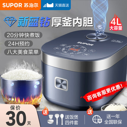 蓝钻球釜内胆,颠覆传统,新晋网红功能,大显示屏,一键柴火饭,8大功能菜单,智能温控曲线,24小时预约,微压防溢免看管。目前天猫商城苏泊尔中式厨房旗舰店秒杀价¥309,下单立减¥90,实付¥219包邮,送烹饪四件套,另外SF30FC689(3L)款折后¥198,有需可入。