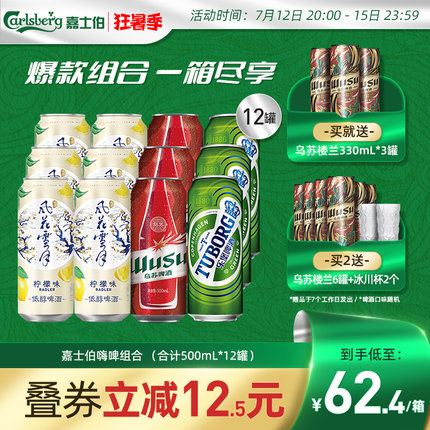 嘉士伯风花雪月+红乌苏+乐堡啤酒组合500mL*12罐 赠乌苏楼兰330ml*3罐55.4元包邮