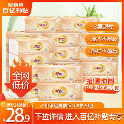 心相印 经典金装系列抽纸(S码) 3层*100抽* 20包27.9元包邮