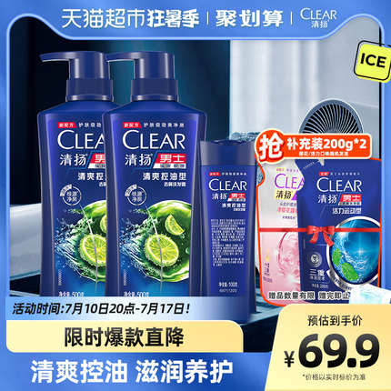 清扬男士去屑清爽控油洗发水500g×2 100g,专为男士设计,双重去屑成分,提升头皮自身净屑力,清爽控油型:含有薄荷醇、茶树和人参精华,帮助抑制头痒、油腻等问题。