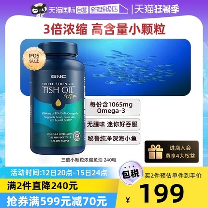 88VIP会员,GNC 健安喜 三倍效力高浓缩深海鱼油迷你胶囊 240粒189.05元包邮包税
