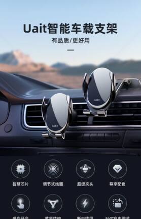 超瓷晶面板 车载无线充电器 稳定不伤机,安装超简单,只需要轻轻一按就可以安装在汽车内把手上,这样就可以轻松地让手机放在最视角最好的位置了~它的特别之处是,利用重力,手机可以自动锁定在支架上,这样就能确保安全了哦~