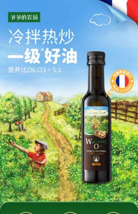 【叠9首单礼金76拍下送米饼+量勺】爷爷的农场儿童辅食核桃油,小红书热推款,富含多不饱和脂肪酸,专属宝宝的一瓶好油,易吸收、不上火,辅食加一滴,美味吃饭香。