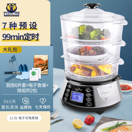 大容量家用透明三层蒸锅,免看火,不占灶头,内置有加热聚能环设计快速出蒸汽,轻松搞定一日三餐。