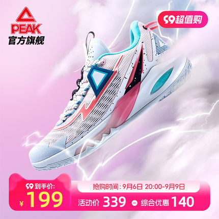 这款篮球鞋天猫商城匹克官方旗舰店售价¥339,叠加¥100优惠券,跨店立减¥40,券后实付¥199包邮,多色可选。