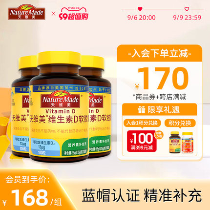 天维美 维生素D软胶囊100粒*3瓶168元包邮