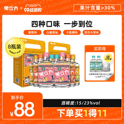 高颜值小瓶,淡淡果味,果汁含量≥30%,15-23%vol酒精度(不同口味),低度微醺,很适合女生。目前168mL*4瓶*2箱装天猫果立方旗舰店售价¥78,叠加¥10优惠券,实付¥78包邮,再赠2瓶到手10瓶,折合¥7.8/瓶好价。