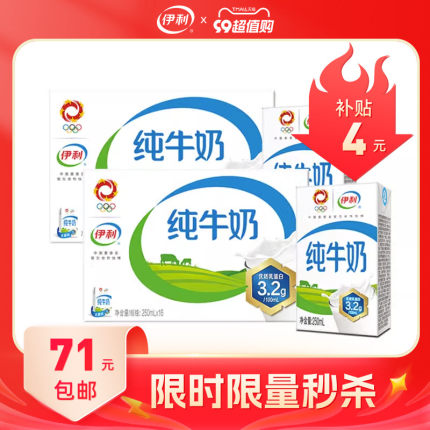 【伊利旗舰店】无菌砖纯牛奶,超市卖62.8一箱,奥运信赖品牌!源自得天独厚的自然环境,蕴育品质奶源!口感纯正浓香,营养价值高!【退货运费险】