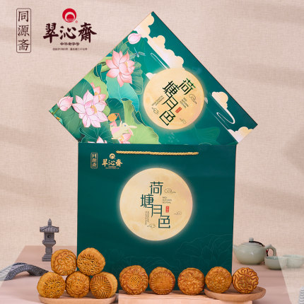 中华老字号,翠沁斋 荷塘月色广式月饼礼盒 9饼9味720g19.9元包邮