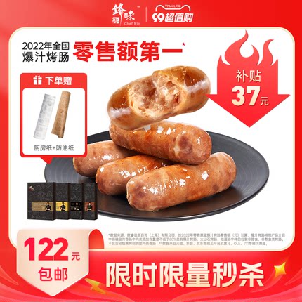 黑猪肉含量≥80%,精选山林散养黑猪肉,1.5:8.5黄金肥瘦比,嫩爽可口,一咬爆汁,Q弹有嚼劲,蒸,炒,烤,煎炸怎么都好吃。目前天猫商城锋味派旗舰店3盒售价¥159,下单立减7元叠加可领¥40优惠券,双重优惠实付¥112包邮,折合¥37.3/件的低价,4种口味可选。赠厨房纸+防油纸。锋味 派 火山石烤肠,采用山林散养300天黑猪后腿肉,80%肉含量,1.5:8.5黄金肥瘦比,天然香辛料配方调和而成,天然优质猪小肠肠衣,口感韧性有嚼劲。