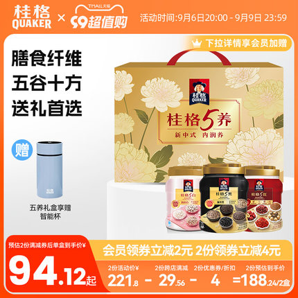 桂格 5养礼盒 5黑5红5白混合即食麦片 860克*3罐 赠智能杯新低84.9元包邮