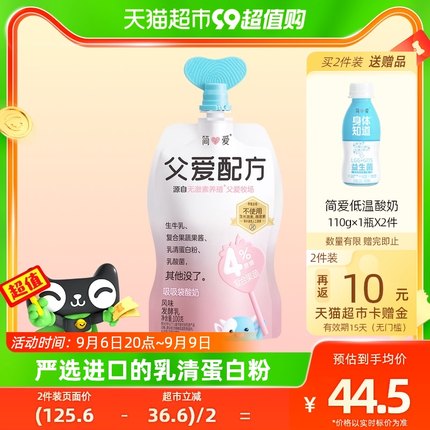 simplelove 简爱 父爱配方4%蔗糖果蔬吸吸袋酸奶100g*6袋 ¥36.3