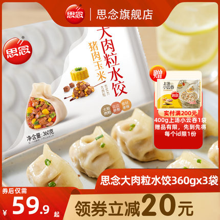 思念大肉粒水饺玉米猪肉饺子360g*3袋 券后35.9元包邮