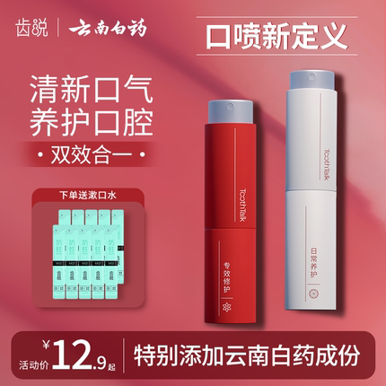 云药口腔旗下口腔科学专研品牌,含云南白药提取物、CPC抑菌因子等,强效抑菌,能有效减少99.9%口腔细菌,维护牙周健康状态,仅口红大小,随身携带一按一喷,健齿防蛀,保持口气清新,随时随地养护易龋口腔。目前商家ToothTalk旗舰店售价¥12.9,满¥25-5.9,领取¥25-10优惠券,下单2件实付9.9包邮,日常养护白瓶此价,三种香型可选。多种口味可选择,云南口腔出品,随身携带一按一喷,健齿防蛀,保持口气清新,随时随地养护易龋口腔!改善口腔异味就靠它啦~