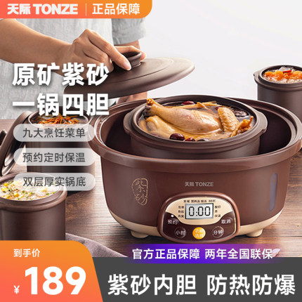 天猫在售价219元,领取30元优惠券,到手189元,大牌,天际,全家可用的多功能煲汤神器紫砂锅,好价值得买