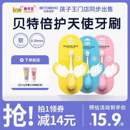 贝特倍护 儿童精致舒柔软毛牙刷4支装 赠益生菌牙膏10g*2支9.9元包邮