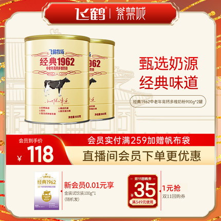 中秋不止月饼!飞鹤经典1962中老年成人加钙铁锌奶粉900g*2罐,经典口味,精选奶源,高铁高钙,生牛乳制作,新鲜更好喝,早晚一杯喝出健康!