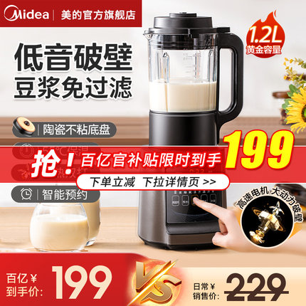 【美的】全新款家用智能海拔识别破壁机1.2L 券后199元包邮