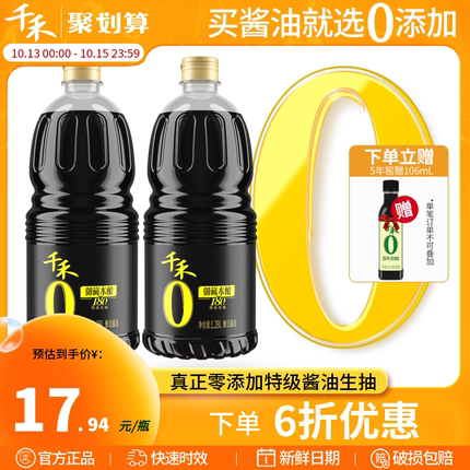 千禾 零添加酱油御藏本酿180天特级生抽 1.28L*2瓶 33.88元包邮(16.9元/件)