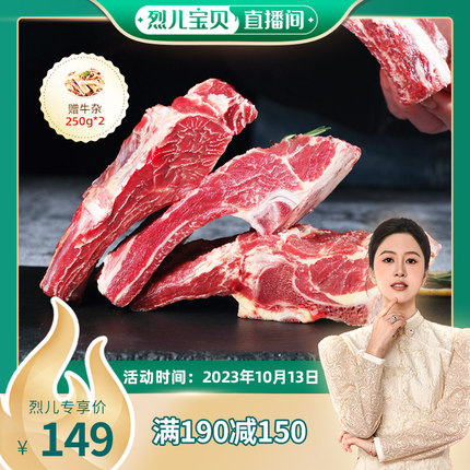 青草家 乌拉圭进口原切草饲五肋牛肋排 2500g +赠牛杂250g*2袋 券后149元包邮