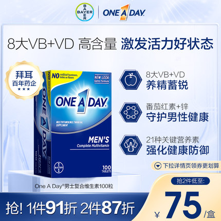拜耳OneADay男士复合维生素100粒 券后49.97元包邮