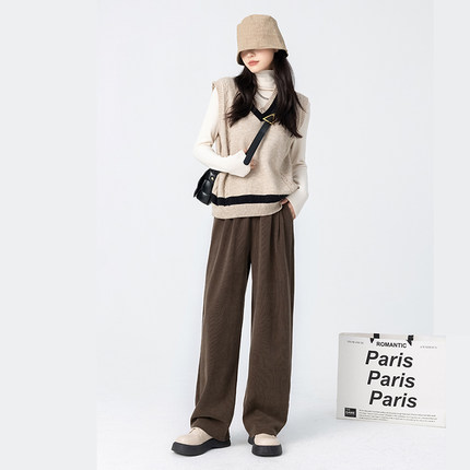 La Chapelle 拉夏贝尔纯色垂感高腰显瘦阔腿休闲裤59元包邮