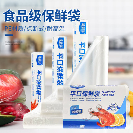 居家必备的好货,洁鲜生平口保鲜袋!三联包,中号、大号、特大号!超大加厚,食品级材质,不易破漏!平口断点式,易撕取,装水果、蔬菜等好使!