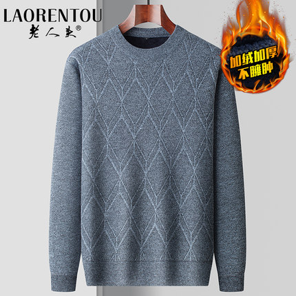 【老人头旗舰店】男士秋冬季针织加绒加厚毛衣针织衫,内里加绒,不臃肿,不变形,天冷了,快安排起来。买一件孝敬孝敬家里长辈!