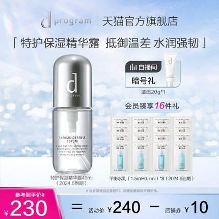 平常90+/瓶,直降半价白菜,效期至2024年6月,用完倒是无压力,介意慎拍!特护保湿精华露,抵御温差,水润强韧。目前天猫商城dprogram安肌心语官方旗舰店售价¥240,领取¥192优惠券,实付¥48包邮到手,加赠平衡水乳( 1.5ml+0.7ml) *8 (2024.9到期),历史新低价。