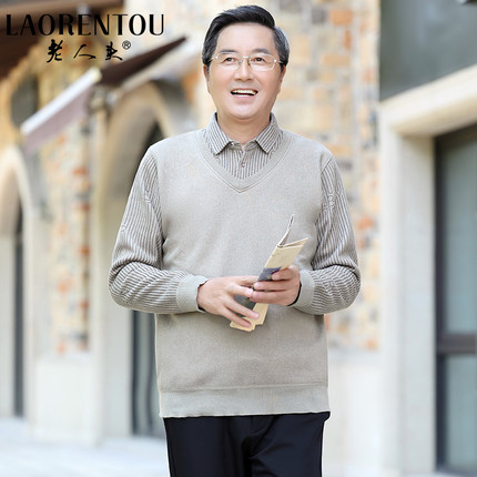 老年男士长袖宽松假两件毛衣打底衬衫,优质高端面料,舒适版型,免烫易打理,不缩水、不褪色,耐穿抗皱,加绒保暖,商务又休闲,适合各种场合!买一件孝敬孝敬家里长辈!