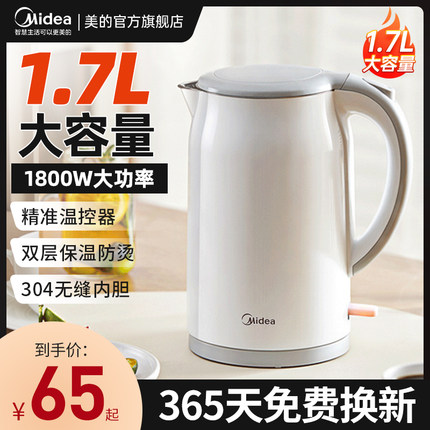 美的 1.7升电热水壶双层保温 券后59元包邮