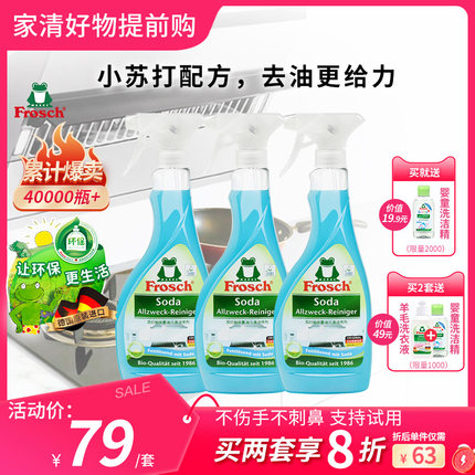 德国进口,Frosch 菲洛施 重油污清洁剂 500ml*3瓶 49元包邮(16.3元/瓶)