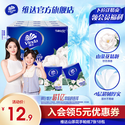 低至¥0.6/包,一包里有7张,加大尺寸210mm*210mm,纸质4层加厚。精选进口原生木浆,长短纤维紧密交织,柔韧不易破,擦拭不掉絮,干湿两用,淡淡山茶花清香,小包装好携带~