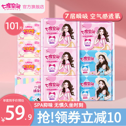 包含:优雅日用245mm*20片+夜用275mm*10片+口袋随身包245mm*17片+护垫155mm*18片*3包。凹点透气面层+底膜,干爽不闷,7层结构瞬吸锁水,加大真芯扇尾,有效防侧漏。
