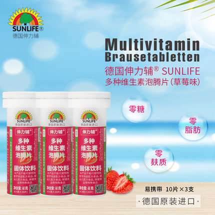 德国进口,Sunlife 伸力辅 多种维生素泡腾片 4.4g*10片*3盒 券后29.09元包邮