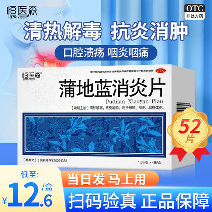 【国药准字OTC】蒲地蓝消炎片52片*2盒 券后18.24元包邮