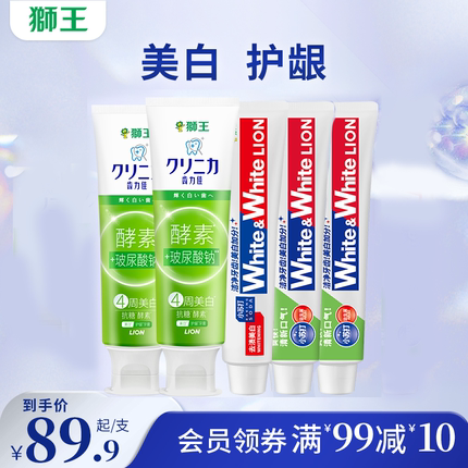LION狮王牙膏多效护理牙膏5支装共600g,真正的亮白“膏”手,权威机构多方位验证,功效真实有效,实现酵素专研口腔护理。目前天猫商城狮王口腔护理旗舰店售价¥89.9,可使用¥50优惠券,实付¥39.9包邮。