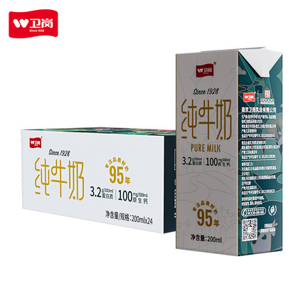 中华老字号,卫岗 纯牛奶 200ml*24盒史低29.9元包邮