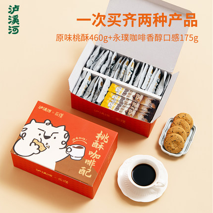 白菜!泸溪河 永璞联名款 桃酥咖啡配组合(460g 原味桃酥+ 175g 咖啡液)新低29.9元包邮