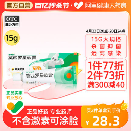 中美史克 百多邦 莫匹罗星软膏 祛痘膏15g29.88元包邮(下单77折)