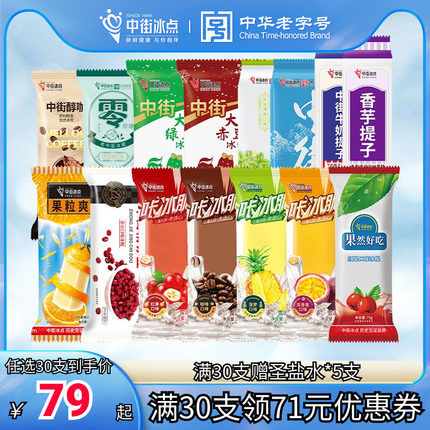 77年老品牌,折合¥2.25/根,线下一根是四五块。有冰鲜奶、中街醇咖、0蔗糖老冰棍、牛奶提子、中街精赤豆、中街大绿豆、果粒爽等11种口味任选,干冰制冷运输,融化包赔。