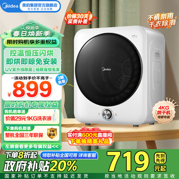 白菜!Midea 美的 MH40V10E 迷你滚筒式烘干机4kg新低507.96元包邮(限时国补全国可用)