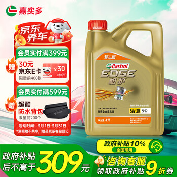 嘉实多京东自营官方旗舰店活动售价¥298,领取7折券,叠加9折国补券,Plus会员实付175.82到手,近期入手低价。