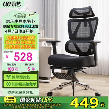 白菜!UE 永艺 沃克PRO高配 人体工学电脑椅 带脚托+3D扶手 新低395.26元包邮