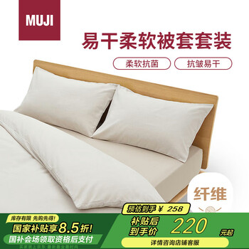 闭眼买、再降价、PLUS会员:MUJI 易干柔软被套套装 床上四件套 米色格纹 139.7元