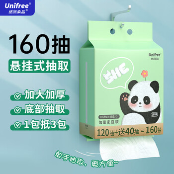unifree 悬挂式干湿两用一次性加厚棉柔洗脸巾160抽13.9元包邮
