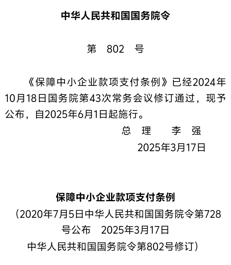早在今年 3 月份,国内修订通过了一个 《 保障中小企业款项支付条例 》(以下简称《条例》),这个条例从 6 月 1 日起施行。