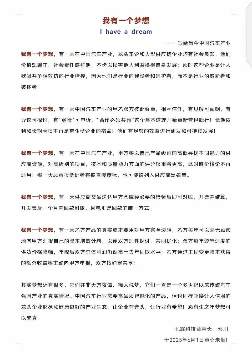 连知名国产空悬供应商孔辉科技的董事长,都被逼得出来说我有一个梦想,希望回款快一点,且只用电汇。