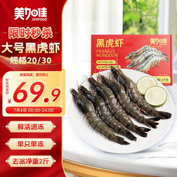 美加佳 国产黑虎虾 大号 20-30只 去冰净重 2斤 新低54.21元包邮(27.1元/斤)