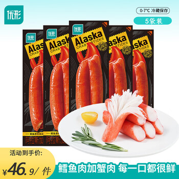 阿拉斯加海产协会官方认证,优形 阿拉斯加蟹肉棒 65g*5袋26.43元包邮(5.28元/袋)